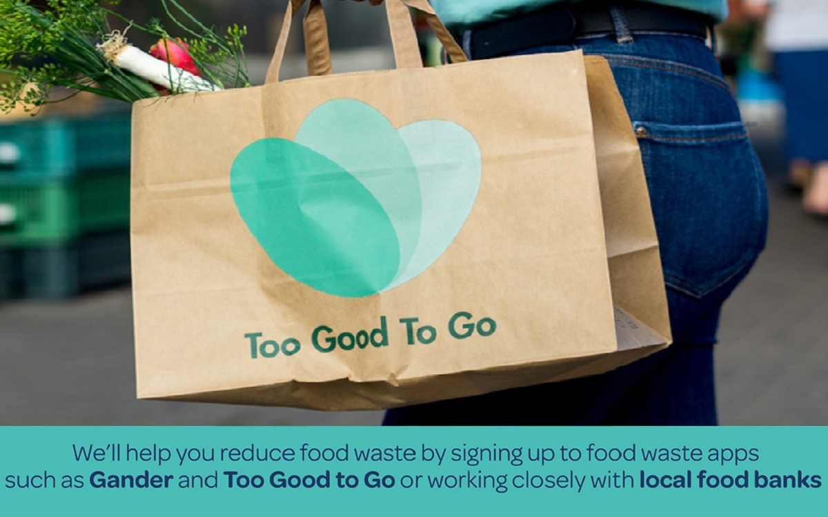 We’ll help you reduce food waste by signing up to food waste apps such as Gander and Too Good To Go or working closely with local food banks. Find out more here.