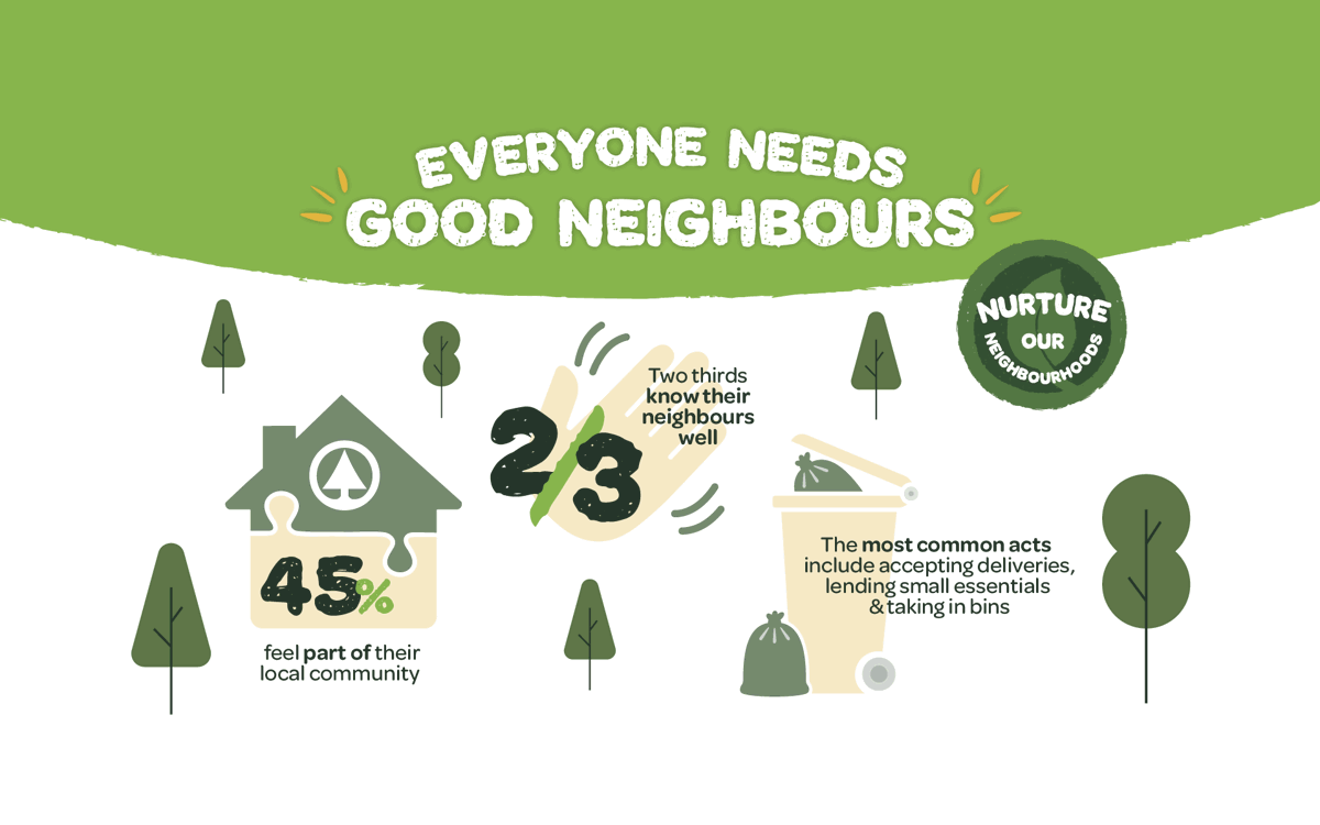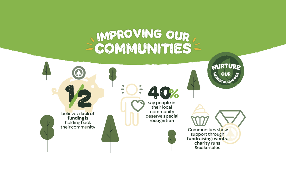 Local communities also support each other by organising fundraising events such as cake sales and charity runs.And 40% agree that there are people in their neighbourhood who deserve special recognition for helping others.