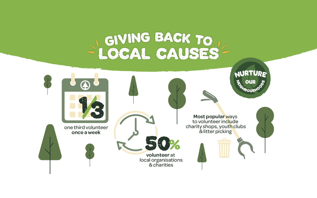 Volunteering is also seen as important with (19%) helping out at local organisations and charities in their area, with 30% previously volunteering in their neighbourhood.
