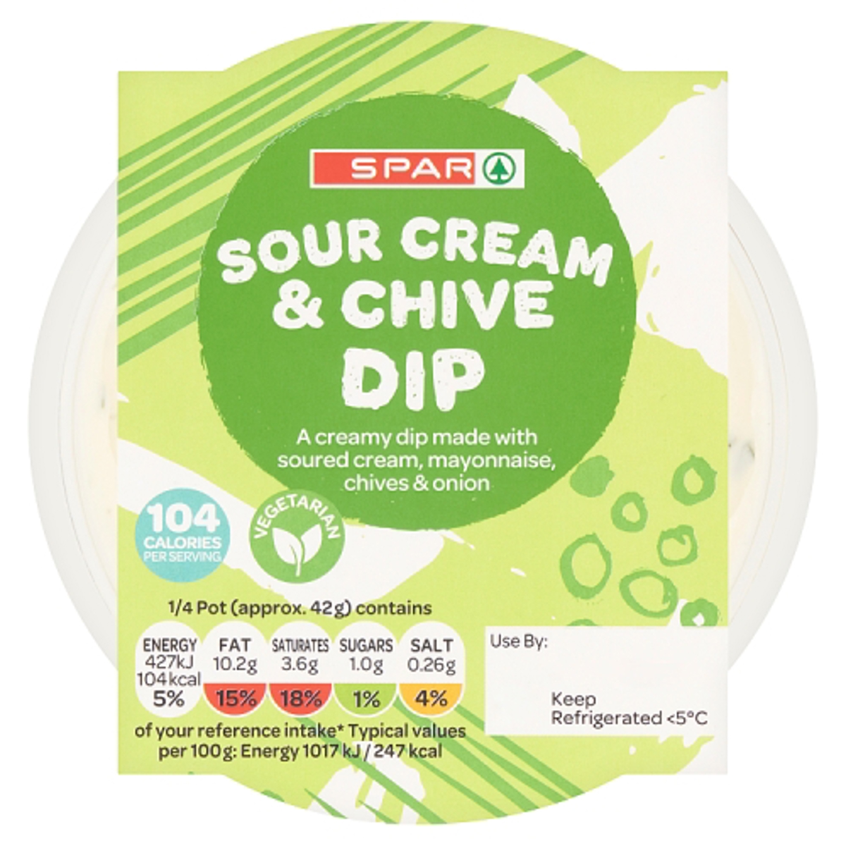 - A creamy dip made with soured cream, mayonnaise, chives & onion
