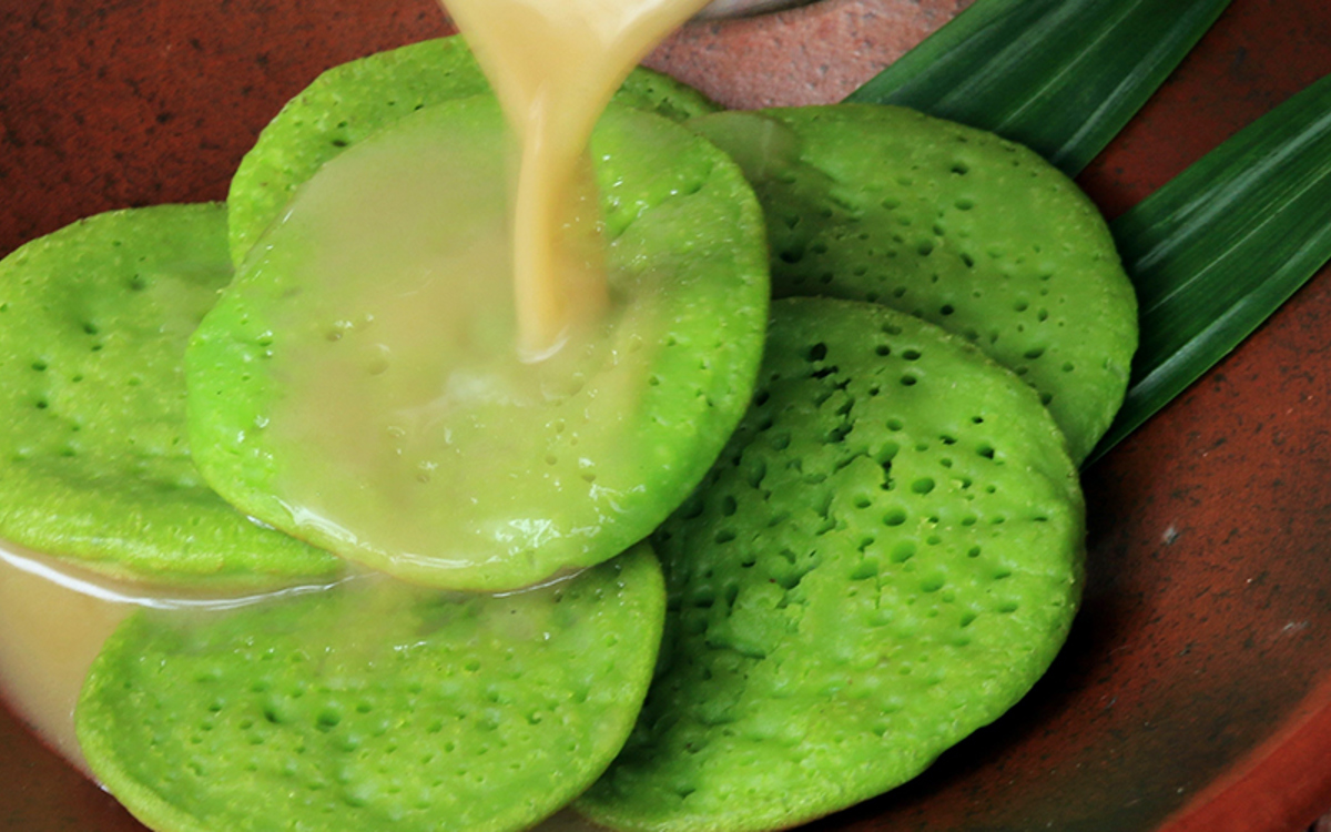 Made with rice flour and coconut milk and distinctively only cooked on one side, most Serabi are eaten sweet, but can be paired with cheese and meat for a savoury snack. This different type of pancake is enjoyed throughout Southeast Asia, and some recipes add pandan leaf juice to form a green hue.