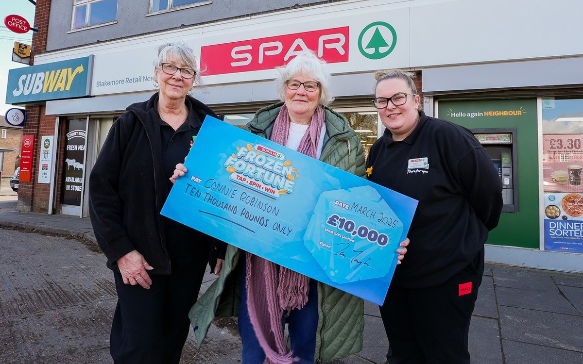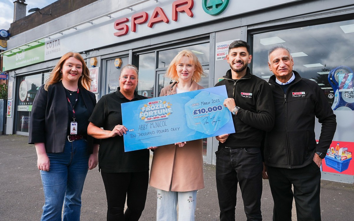 Abby was still in disbelief as she collected her grand prize cheque at SPAR Paisley Road in Renfrew where she was greeted and congratulated by store owner Saleem Sadiq and Lori Watson from SPAR Scotland distributor CJ Lang & Son.