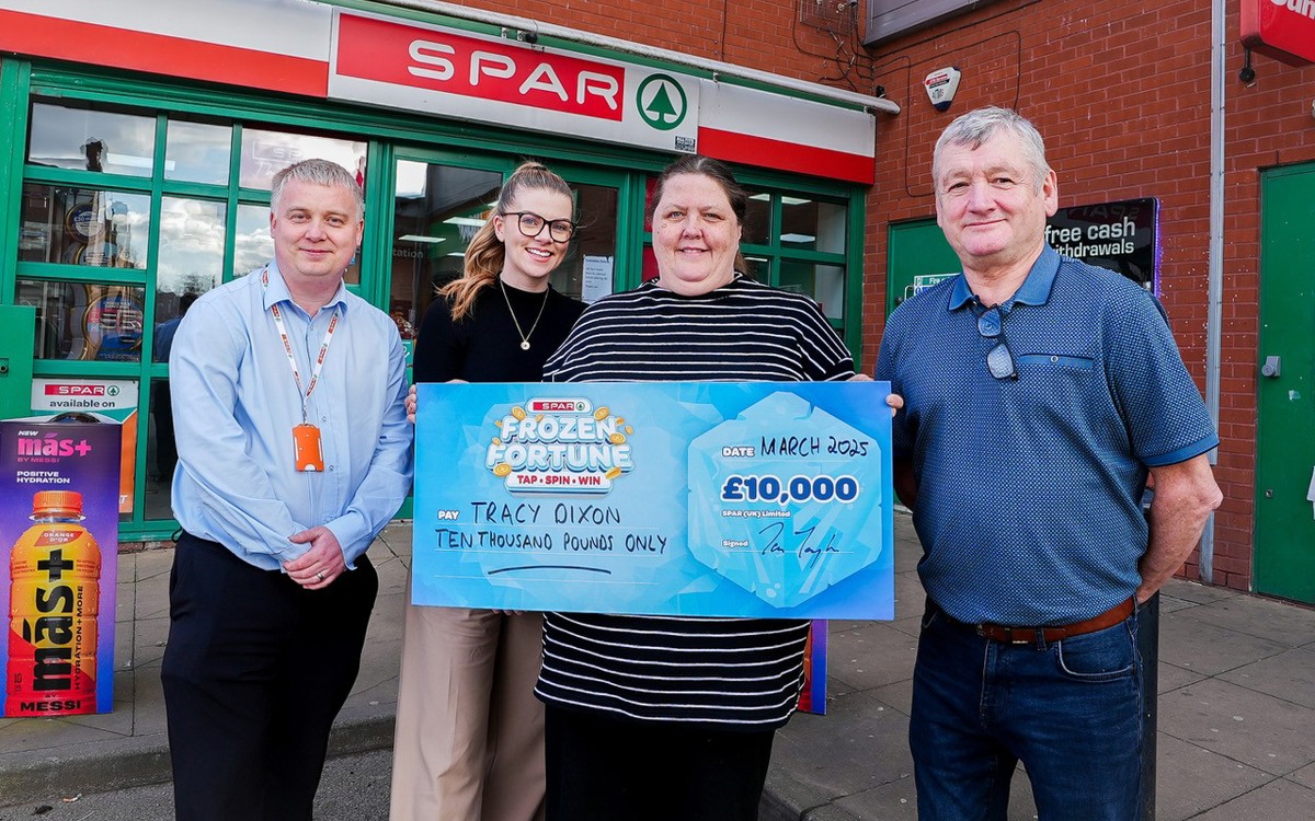 Tracy was delighted as she collected her grand prize cheque at SPAR Poets Corner just around the corner from where she works at the University of Salford. She was greeted and congratulated at the SPAR store by owner Mark Cleary and Marketing Manager Philippa Harrington from SPAR North of England distributor James Hall & Co. Ltd.