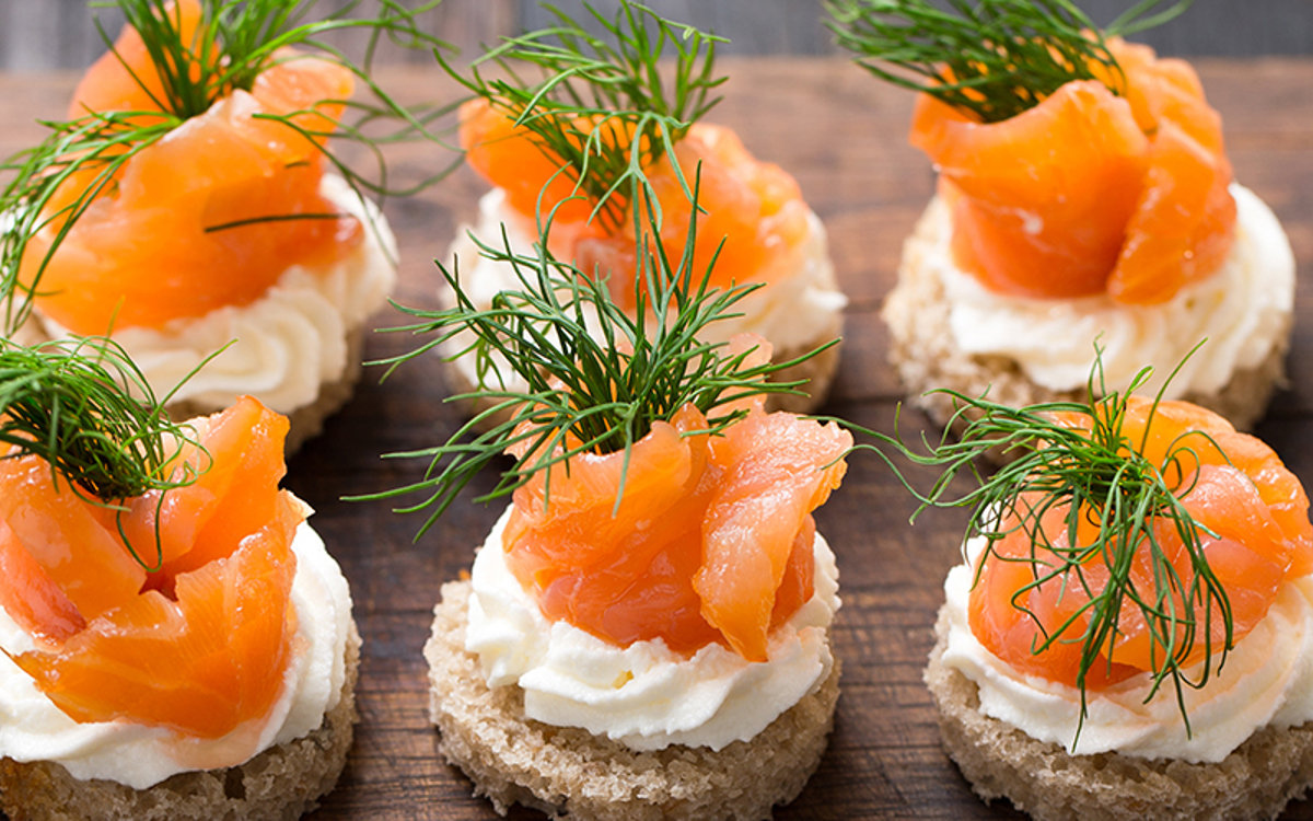 When it comes to posh food ideas, canapés and cocktails are the perfect finger foods to welcome your guests with while keeping their hunger at bay. And for posh canapé ideas, look no further than these smoked salmon and cream cheese canapés. Mix cream cheese, crème fraiche, lemon juice and zest and scoop this filling onto crisps breads. Then simply top with salmon and some fresh dill – the perfect dinner party recipe to get things started. Posh finger food doesn’t get much better than this.
