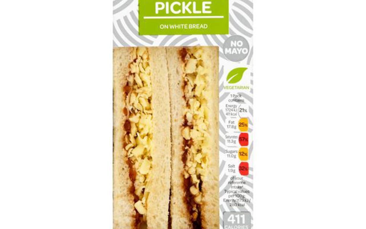 2. Mature cheddar cheese and pickle on brown bread, with Tyrell’s Ready Salted potato crisps – the acidic tang of pickle needs a neutralising flavour – ready salted fits the bill.