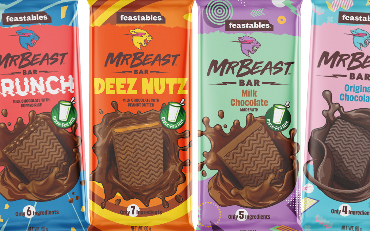 Feastables is a range of four chocolate bars from YouTube sensation MrBeast. The four SKUs will be available in participating SPAR stores all over the UK from 10th July and priced between £2.00 and £2.49.