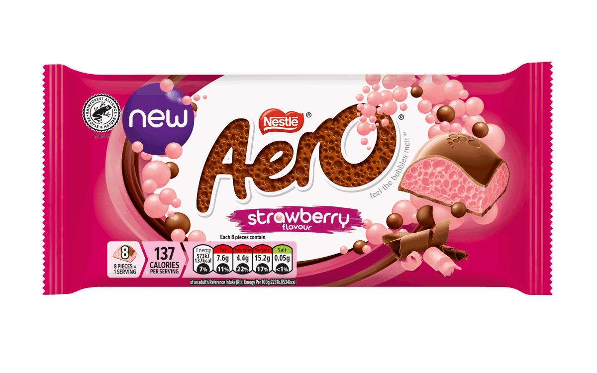 The new Aero Strawberry flavour sharing bar will be exclusively available in SPAR stores in England, Wales, Scotland and Northern Ireland from 16 May before rolling out to value retailers, wholesale and convenience stores nationwide in July.