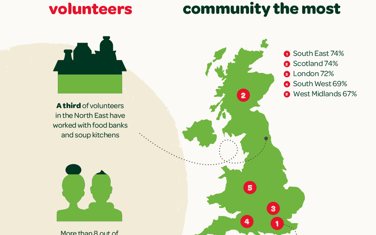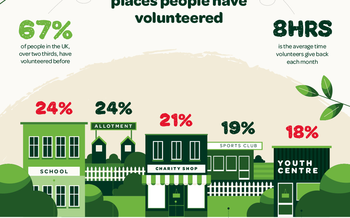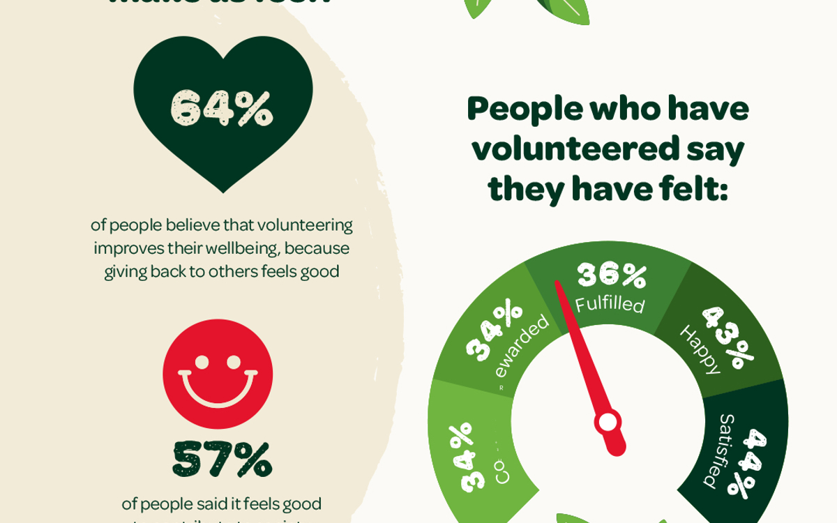 Volunteers’ reasons for getting involved vary, with 56 per cent doing so to help others, and 46 per cent wanting to give back to their community. It also emerged that 16 per cent have started helping others more in 2023.