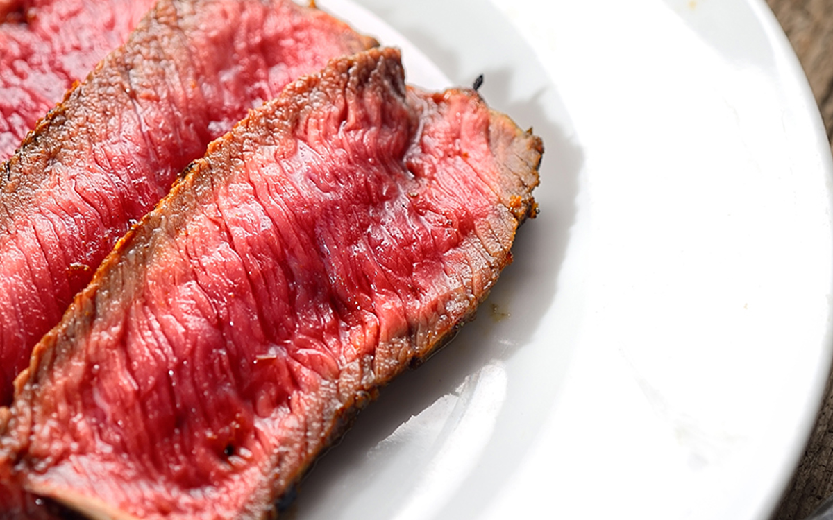 But what to look for on the inside? A medium steak usually has a small amount of juice flowing, and will have a strip of pink through the middle, normally no more than 25%.