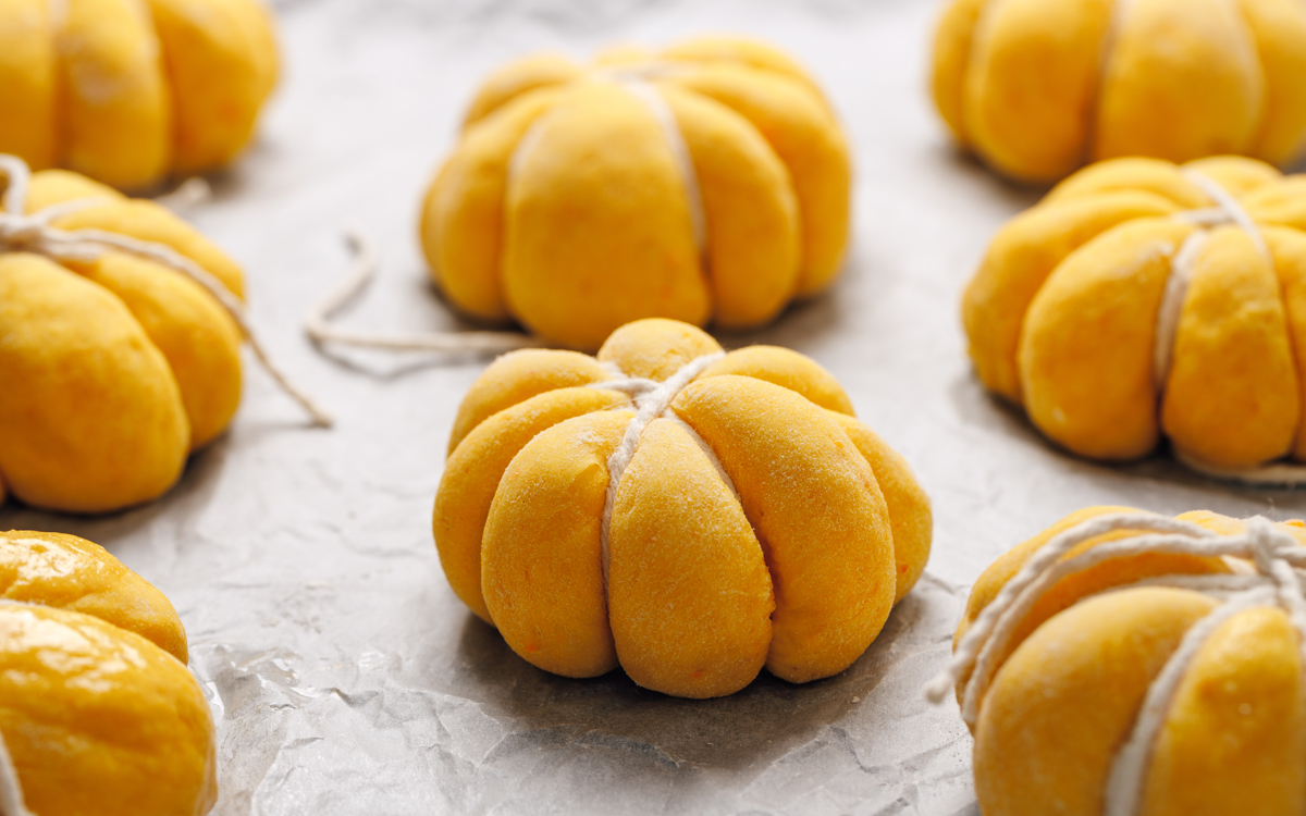 - Pinch the dough at the top and fold corners of the dough upwards to create a mini pumpkin shaped delight.