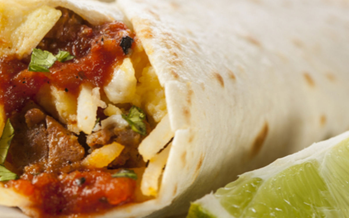 Heat a wholemeal tortilla under the grill for around twenty seconds per side. Cut your sausages into small chunks. Chop up a plum tomato, yellow pepper, and half an avocado. Add the veg, sausages and omelette to the centre of your tortilla and fold into a burrito.