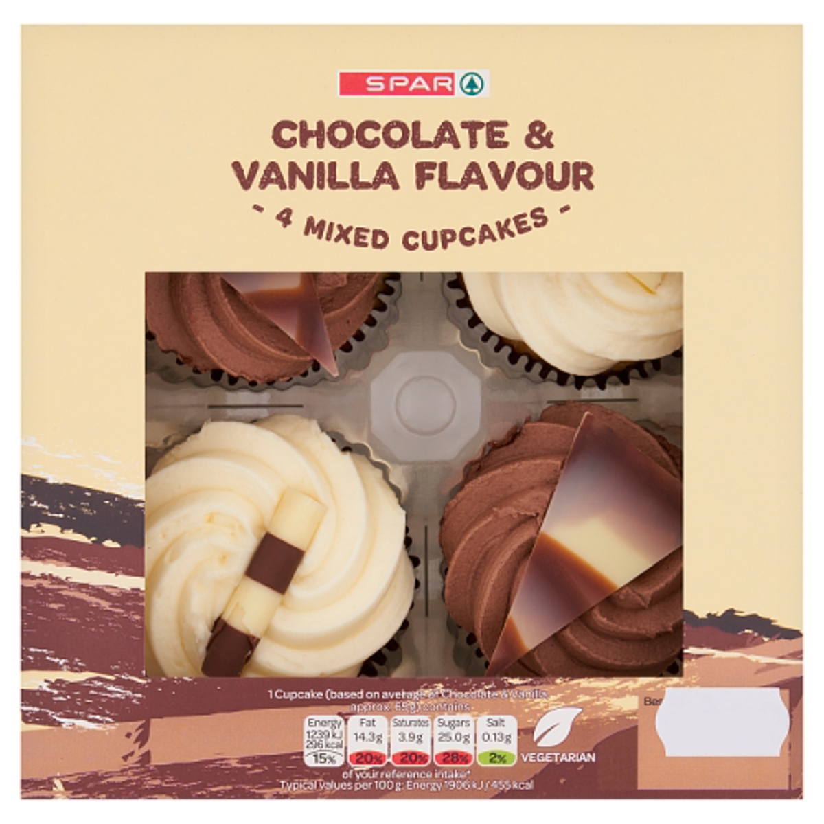 SPAR Chocolate & Vanilla Flavour 4 Mixed Cupcakes 260g