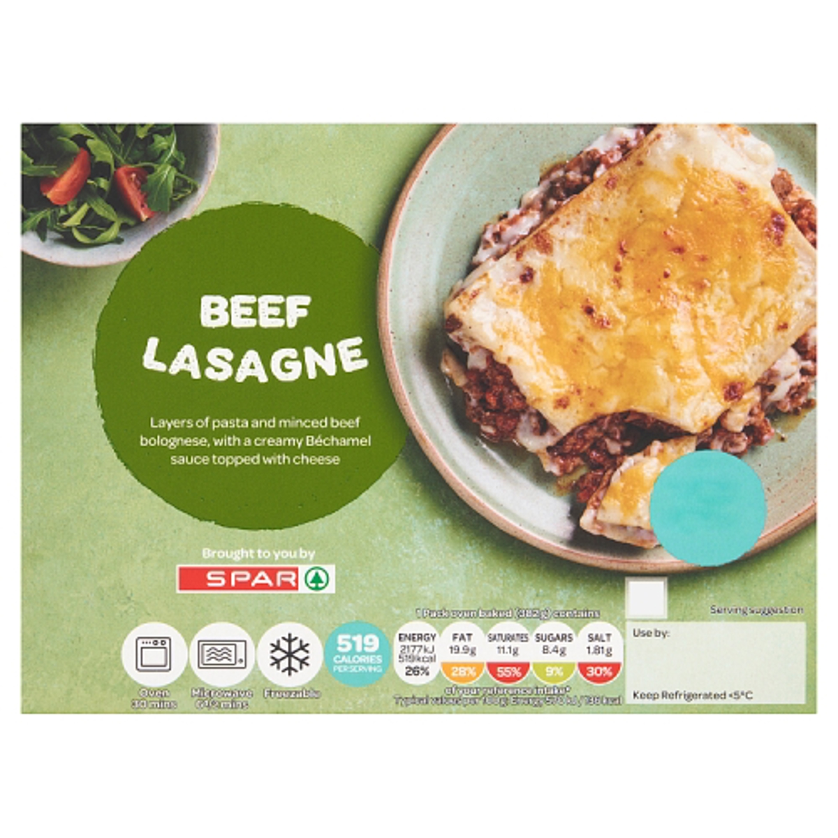 - Minced Beef and Tomato Sauce (57%) (Minced Beef (40%), Water, Tomatoes (9%), Tomato Paste, Onions, Carrot, Red Wine, Garlic Purée, Cornflour, Basil, Oregano, Salt, Rapeseed Oil, Sugar, Beef Stock (Beef, Yeast Extract, Natural Flavouring, Salt, Tomato Paste, Molasses, Concentrated Lemon Juice, Onion Powder), Ground Black Pepper)