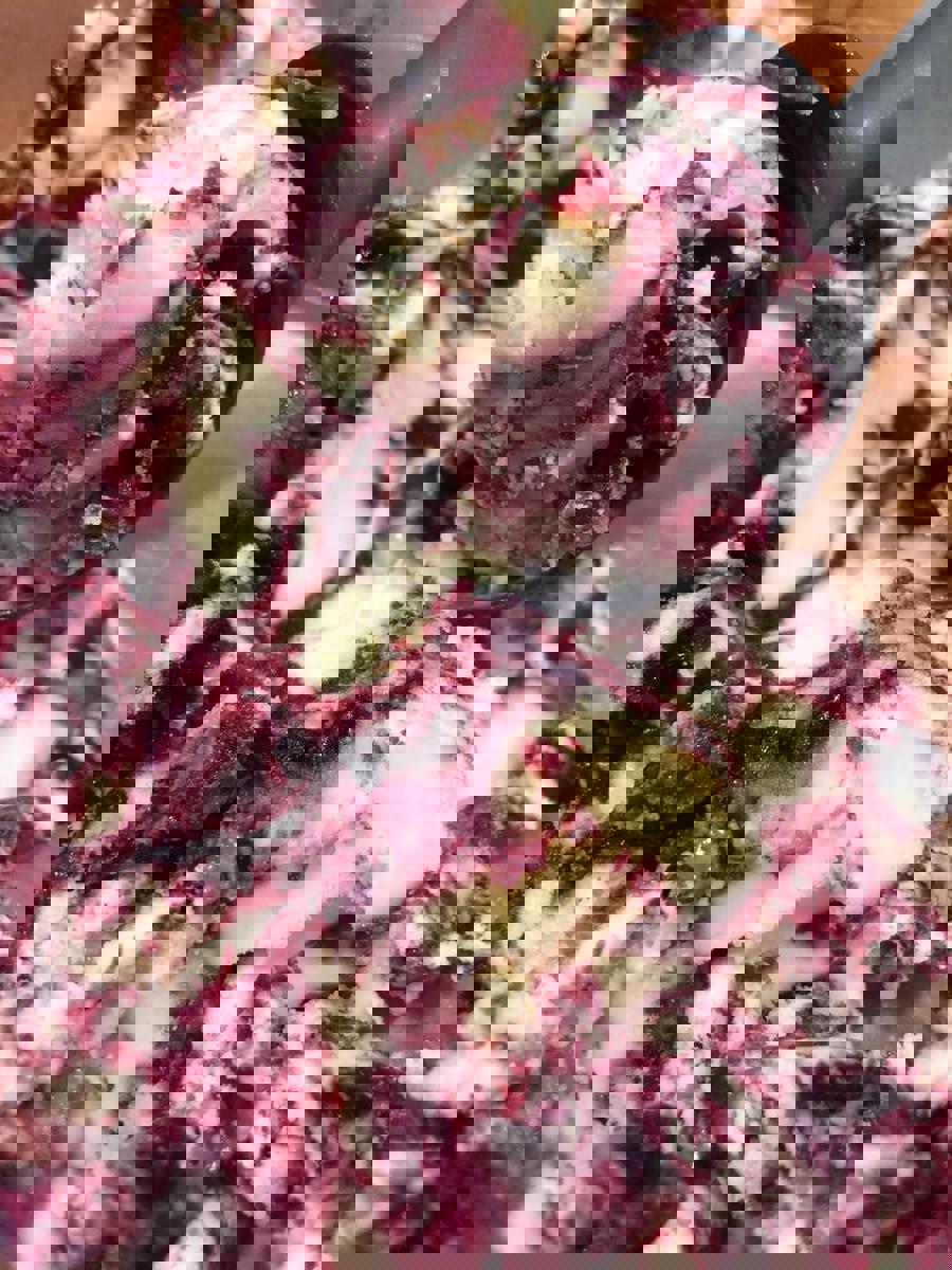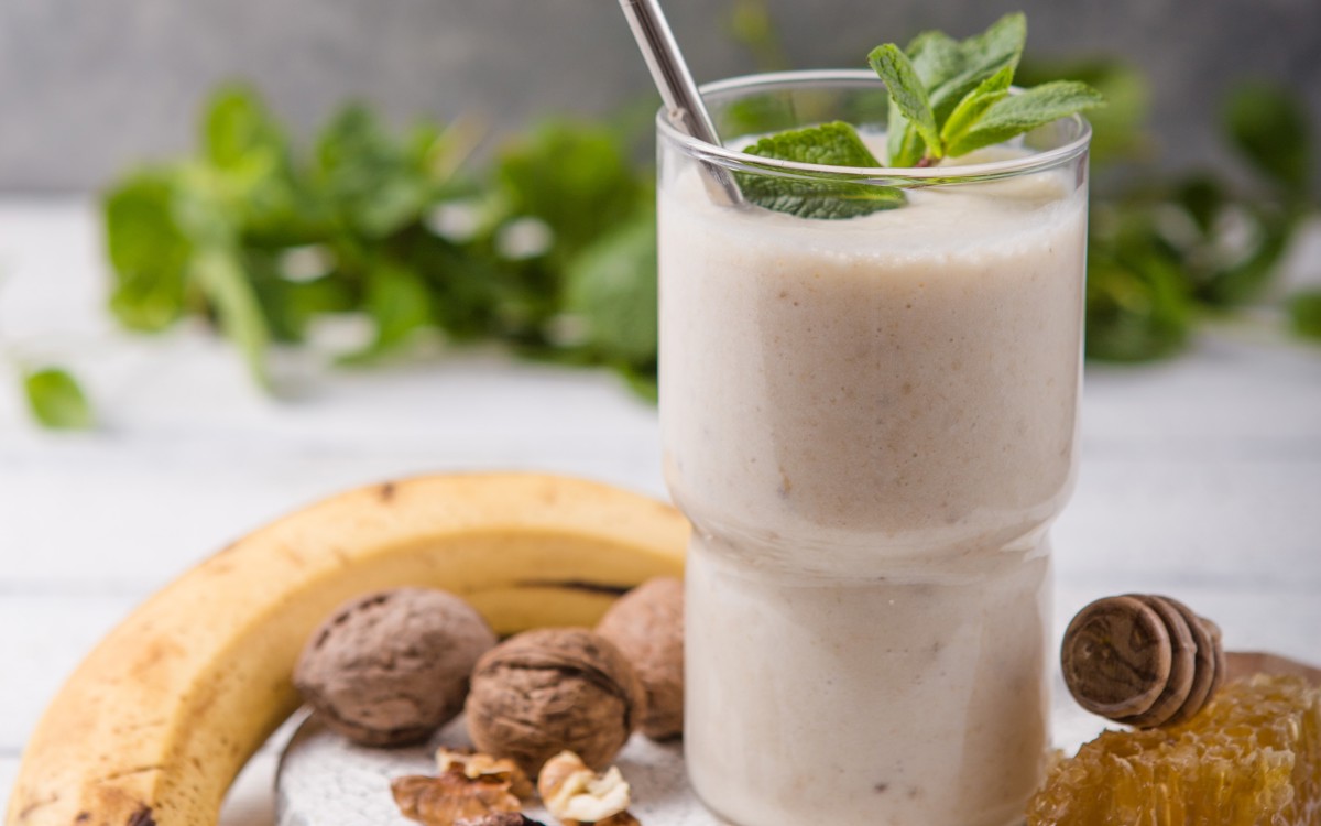 - In a blender, pour frozen banana, walnuts, natural honey, and mix well.