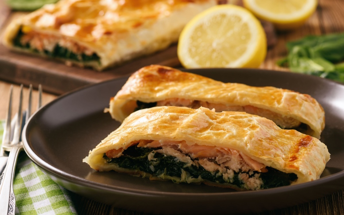 - Cut into rectangle/square or any of your desired shape. Or if you're feeling adventurous form into the shape of a fish! Place the fish filling in the centre of the dough and fold one end of the dough to meet other end. Seal the end by using the tip of a fork. Repeat with the remaining dough.