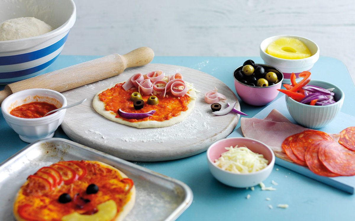 Pizza dough is easy enough for the kids to make themselves, they’ll enjoy getting their hands into the sticky dough, kneading and rolling out. Then let them have some fun with different toppings, making faces with lots of ingredients.