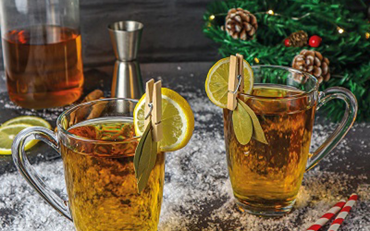 - Garnish each of your glasses with a bay leaf and a lemon slice.