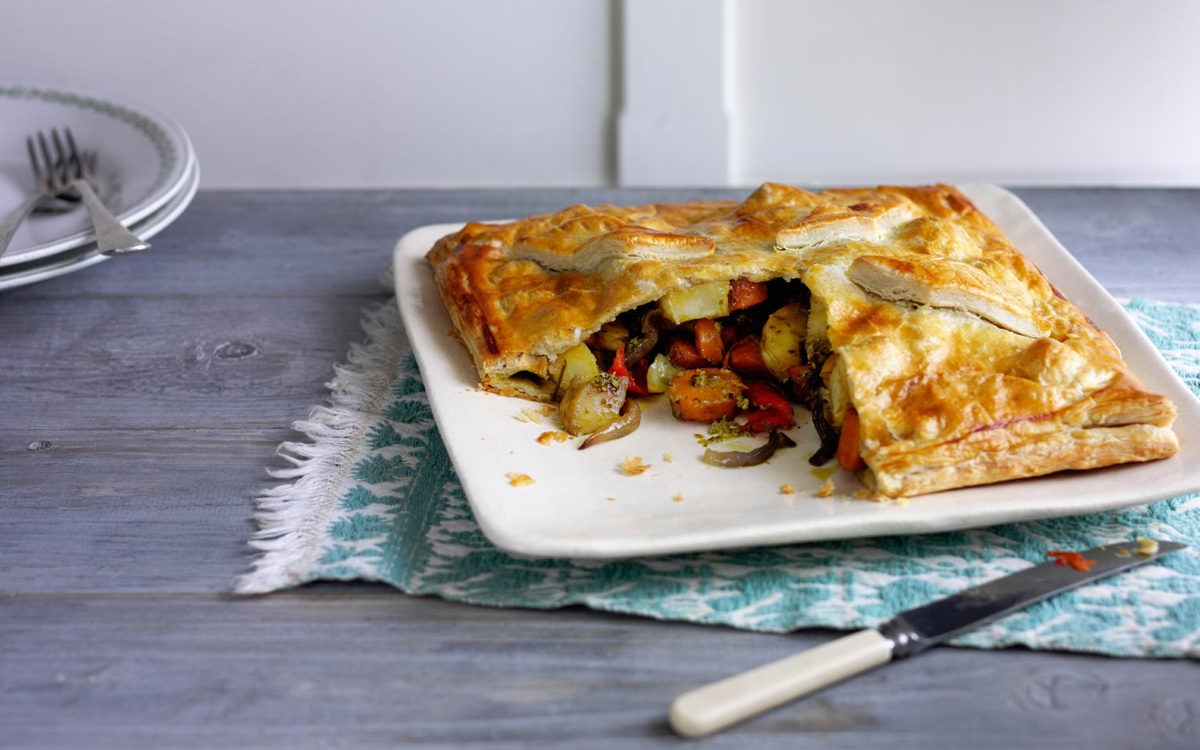 Quick and easy recipe for vegetable pie. Perfect for vegetarians and a great way to enjoy a selection of fresh seasonal vegetables. Cut through the crispy pastry topping to reveal deliciously baked vegetables full of flavour.