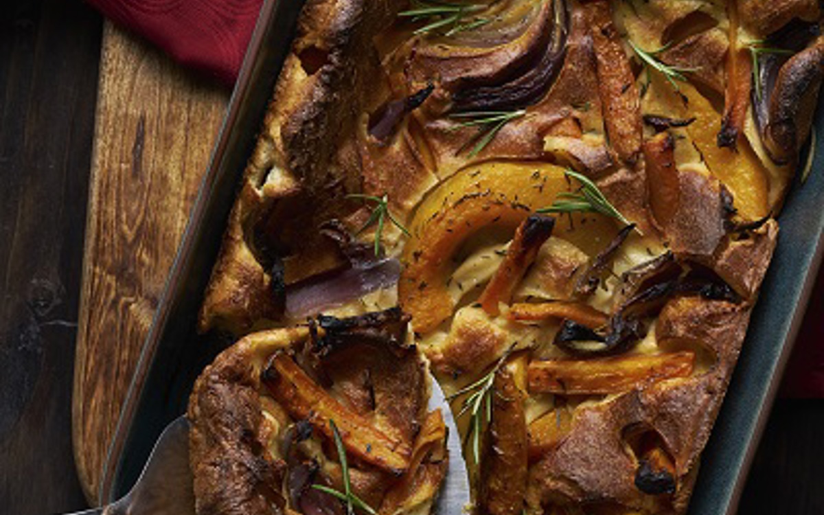 Wondering how to make vegetarian toad in the hole? Try our toad in the hole recipe with a twist. This vegetarian recipe works well as a main course or a side dish for a roast to save space on your plate. It's easily adaptable, and you can opt for a more traditional approach by making a veggie sausage toad in the hole for a more hearty option if you wish. Alternatively, cook the batter in muffin trays for individual portions to make your veggie toad in the hole a bite-size brilliance.