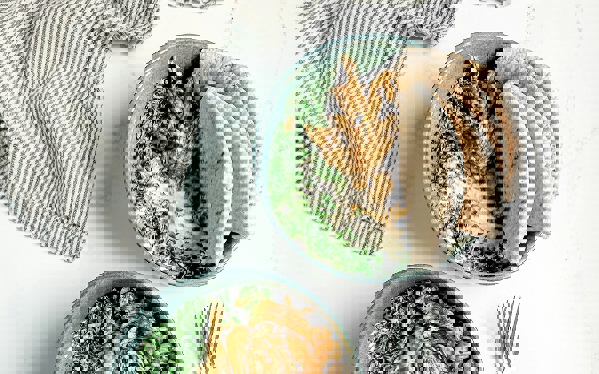 If you’re looking for a high protein, low sugar meal then this shredded chicken, houmous and pitta bread bowl is your new favourite recipe. The delicious creaminess of the houmous pairs well with the warming spices of the shredded chicken. The result? A satisfying lunch time meal that hits all the right spots.